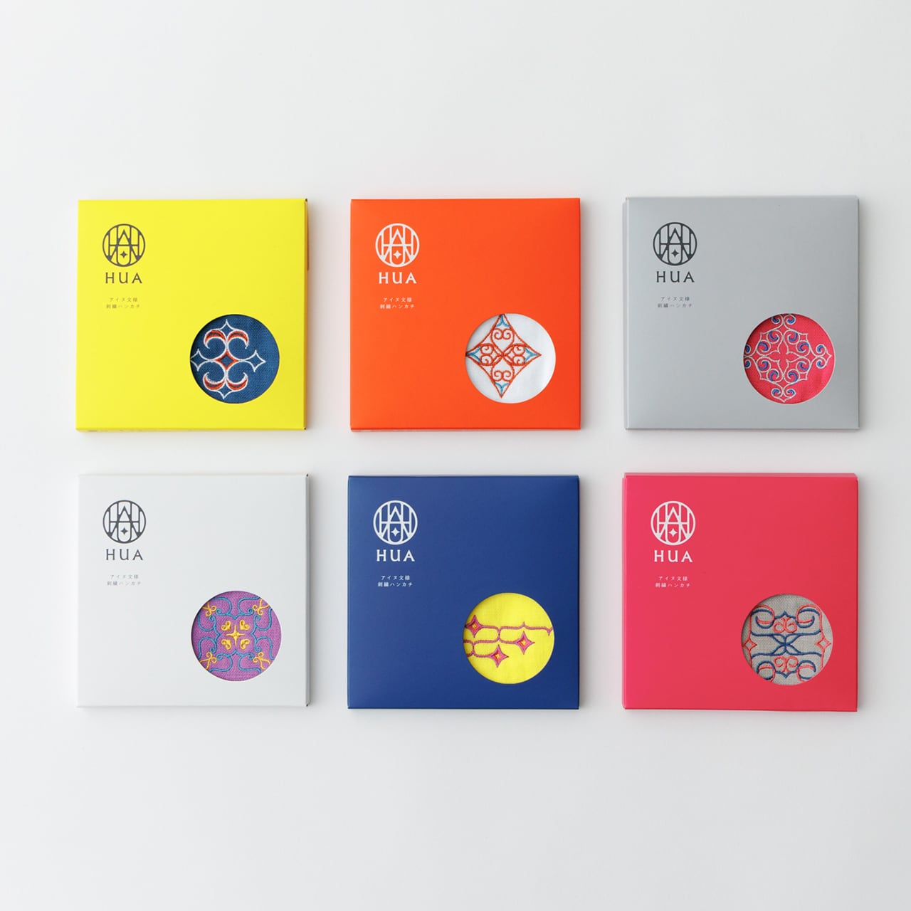 小さいながらも大きな想いが込められたアイヌ文様を刺繍したガーゼハンカチ。送る人へ想いを込めてもよし、自分への願掛けとして持つもよし。おしゃれな箱に入っているので、ギフトとしても最適。